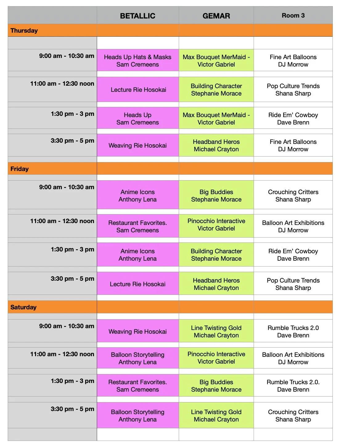 The secret weapon every balloon artist needs! This class focuses on that essential collection of eye-catching, quick-execution designs that create the magical "I want that!" response from kids and adults alike. We'll explore both timeless classics and fresh twists on beloved favorites – those reliable crowd-pleasers that keep your line moving and customers happy. Participants will learn the art of scaling simple designs into showstopping centerpieces, gender-neutral approaches that appeal to everyone, and rapid-fire techniques for busy events. These aren't just balloon animals – they're conversation starters, photo opportunities, and repeat business generators. Perfect for line work, walk-around entertainment, and those moments when you need guaranteed crowd engagement.